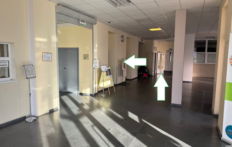 Naudokites liftu arba laiptais ir kilkite į trečią aukštą